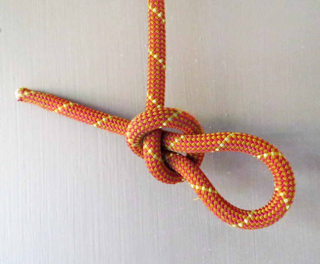 Use a small piece of baling twine to make a ring and then slip the end of the rope through the baling twine ring .